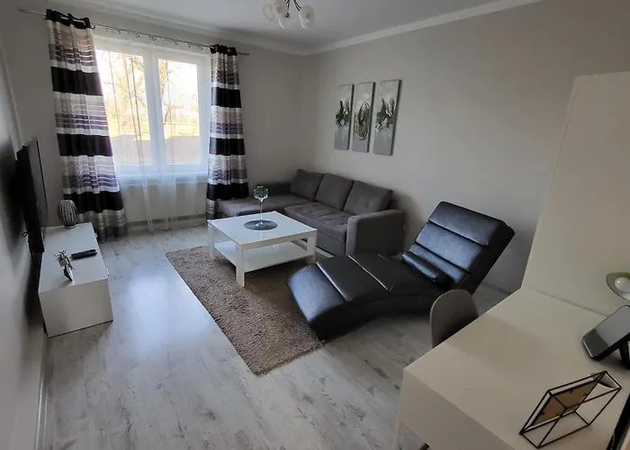 Apartmán Apartamenty Motyl nabízí kompletní kuchyni i pokoje s psacím stolem, přístrojem na přípravu kávy a čaje, místností na posezení. Ubytování je ve vzdálenosti 10 minut autem z Park Zamkowy a 20 minut chůze od Pivovarské muzeum Živec.